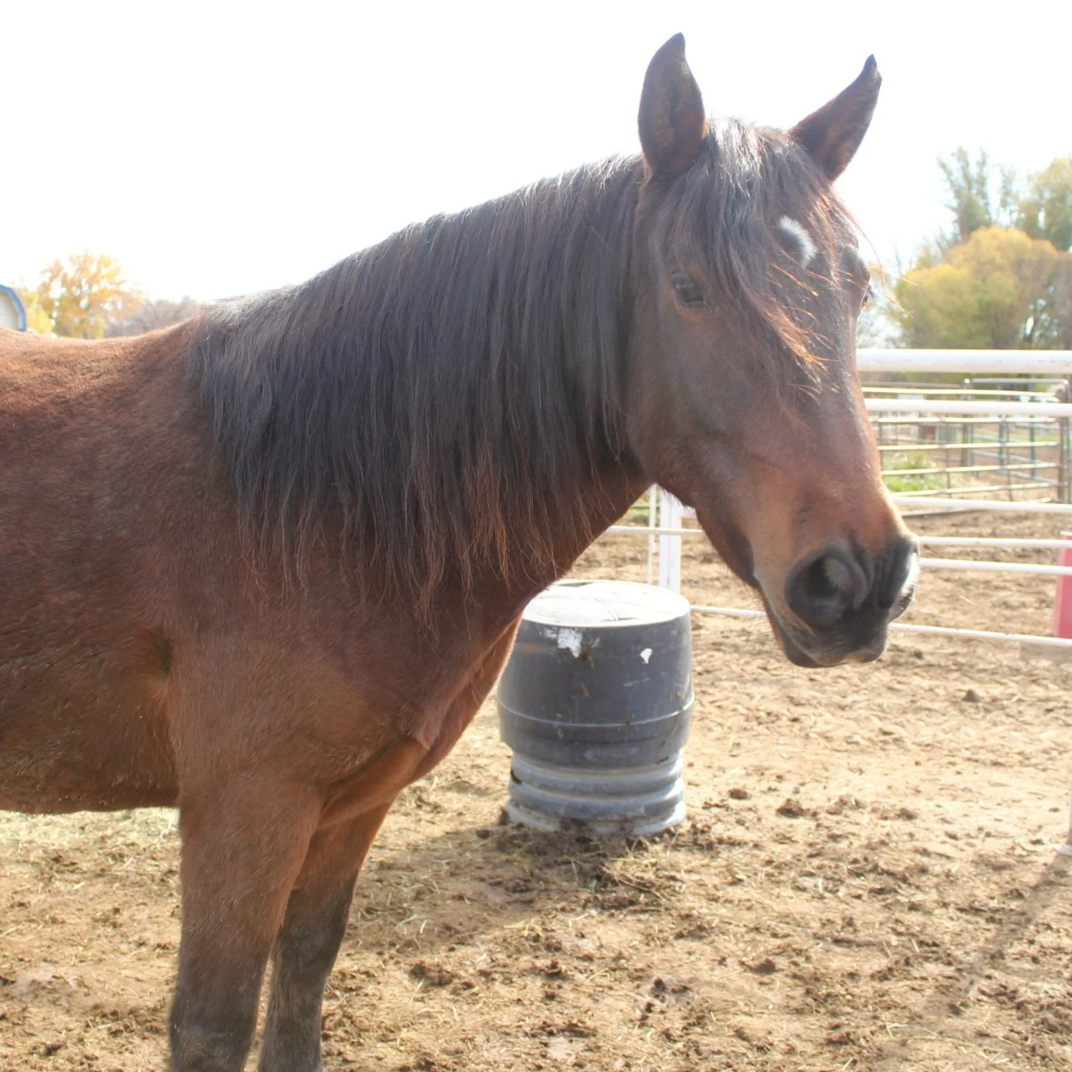 Notes: This mare came to us in March of 2023 and was terrified of people. She now comes right up and asks for scratches and treats.
